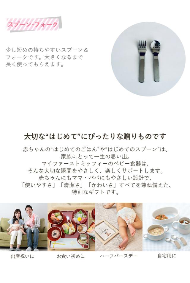 こどもが使いやすい」ように形状に工夫された、一人でする初めての食事を応援する幼児食器です。