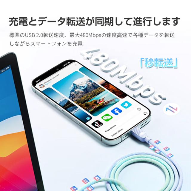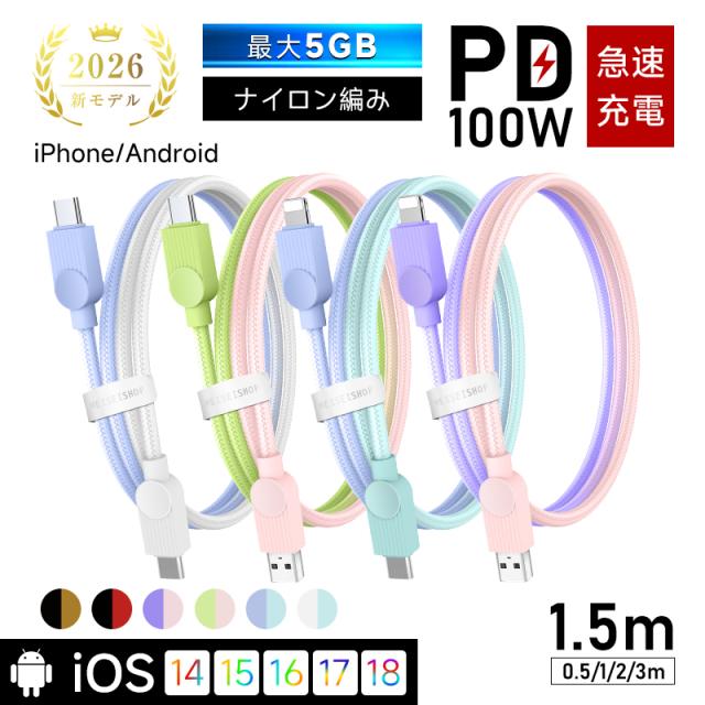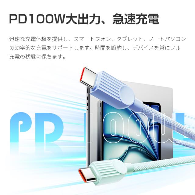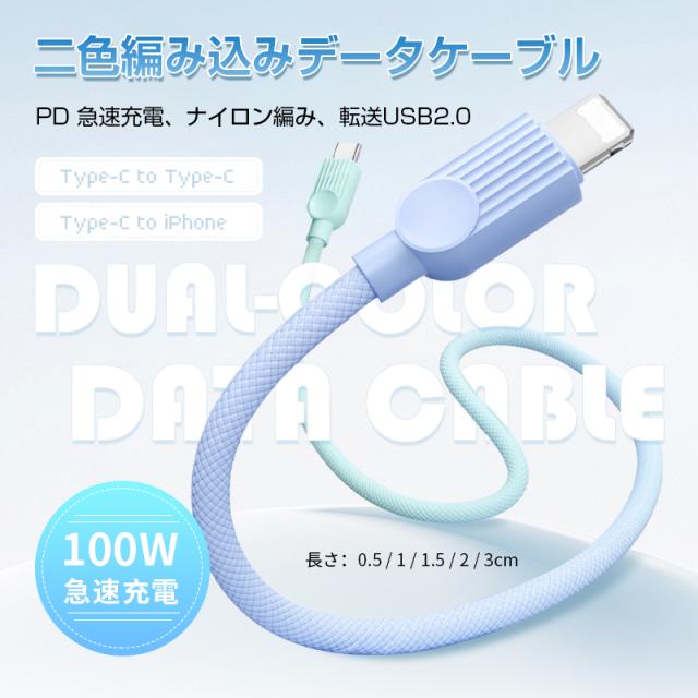 Type-C to Type-Cケーブル Type-C to iPhone 長さ0.5m/1m/1.5m/2m/3m タイプC スマホ充電コード PD100W 急速充電 USBケーブル usb-c ケーブル ゲーム機充電 480Mbps 高速データ転送 USB2.0 高耐久性 断線に強い ナイロン繊維 【PL保険加入済み製品・安心】