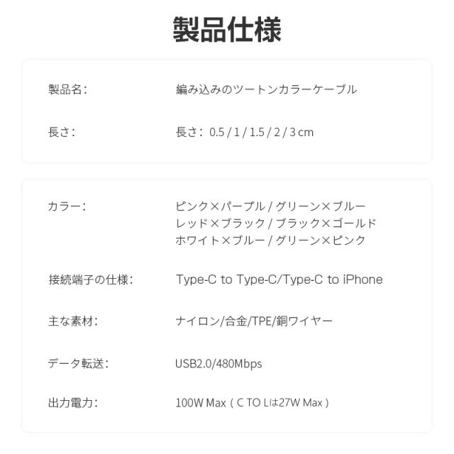品名: Type-C to Type-C/Type-C to iPhoneケーブル