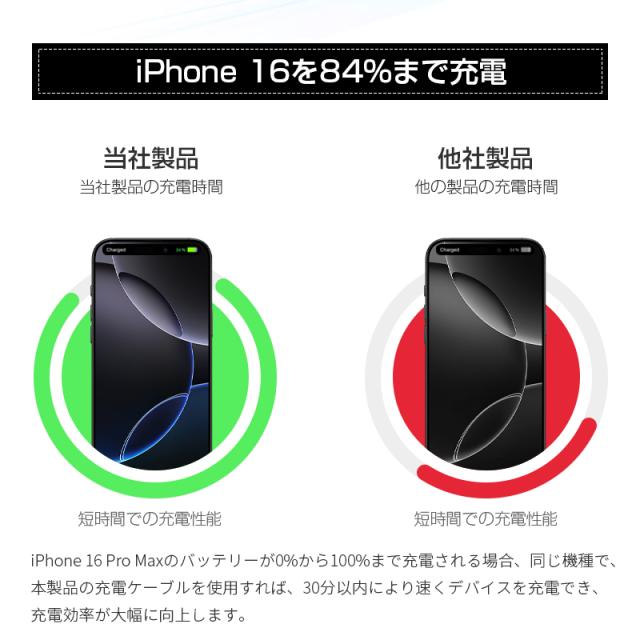 最大100W「USB PD」対応、大きな電力を必要とするノートPCやモニターの充電ケーブルとしてもおすすめです。MacBookへの充電を行いたいなら、必ずこの両側タイプCのケーブルを!(*Type-C to iPhoneケーブルの最大電力は27Wです。)