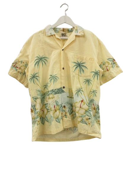 【中古】Winnie Fashion アロハシャツ ハワイアンシャツ 総柄 コットン イエロー L 半袖 メンズ