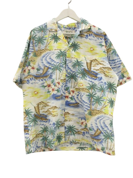 【中古】KY'S アロハシャツ ハワイアンシャツ 総柄 ハワイ製 青系 半袖 メンズ