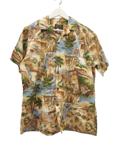 【中古】RESERVE アロハシャツ ハワイアンシャツ 総柄 ハワイ製 ブラウン系 半袖 メンズ