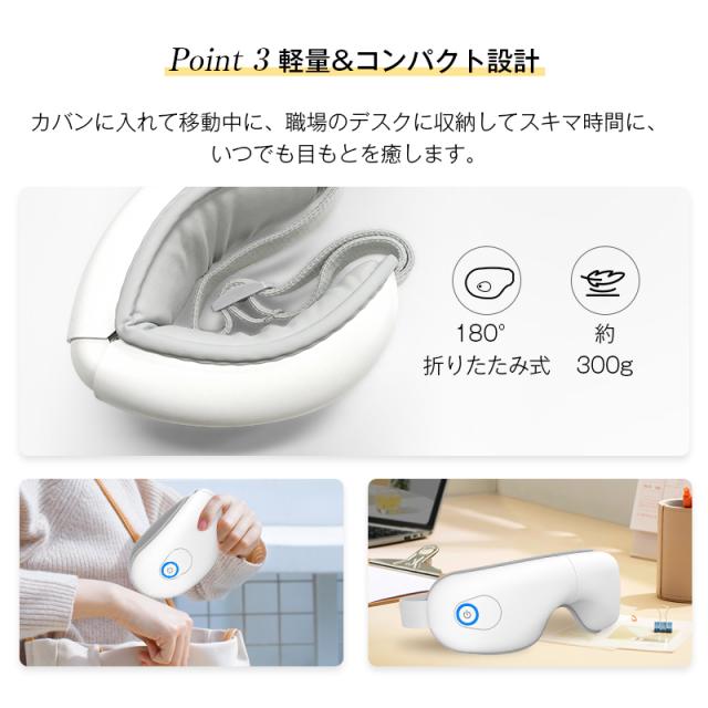 アイマッサージャー アイリラックス 温熱ケア 目元エステ ヒーター搭載 空気圧マッサージ 5つのモード ポータブル 180度折り畳み