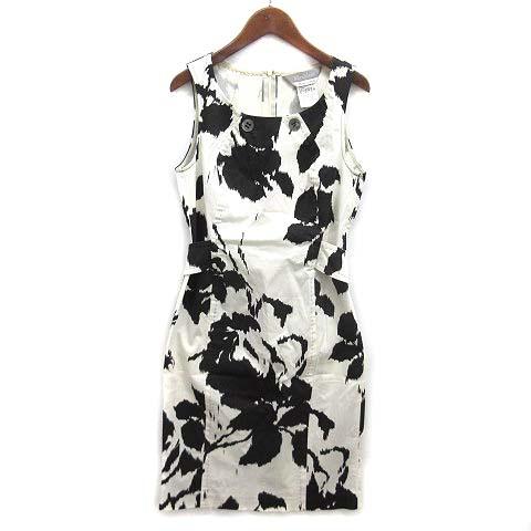 【中古】マックスマーラ MAX MARA モノトーン フラワープリント ノースリーブ ワンピース ストレッチ ホワイト ブラック 白 黒 38