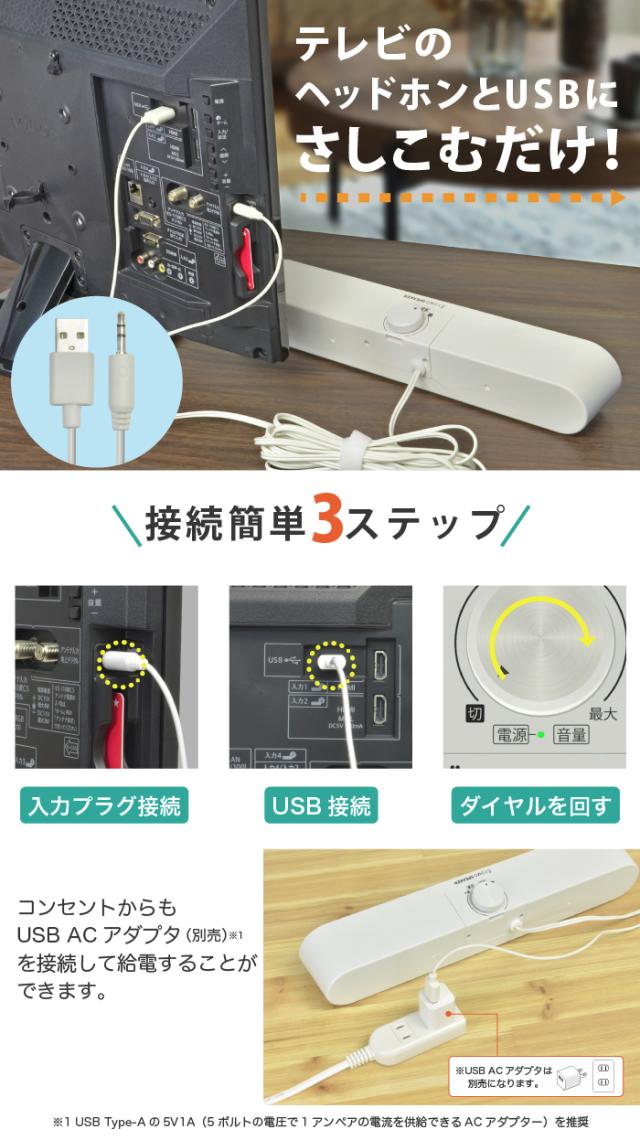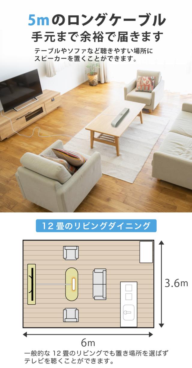 手元スピーカー テレビ用 OTOMO スピーカー ケーブル長5m USB給電 かんたん操作 ゼロ遅延 大音量 ステレオ 高出力 アンプ内蔵