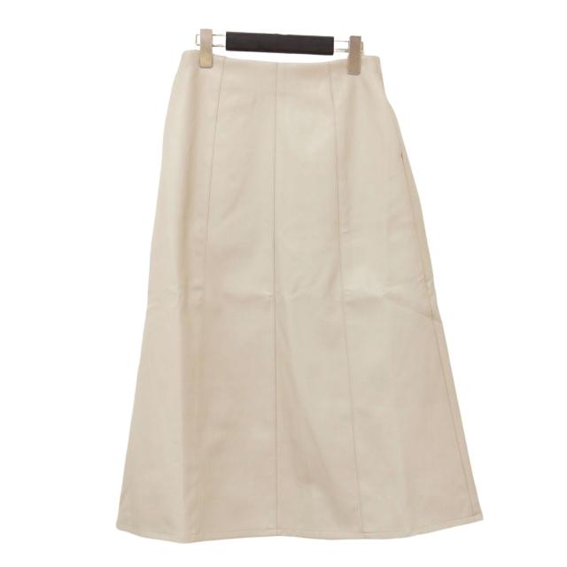 Q キュー スカート ベージュ サイズ:2(M) | フェイクレザー バック付き スカート | Aライン ミディ丈 スリット ストレッチ | ボトムス【レディース】【K4534】