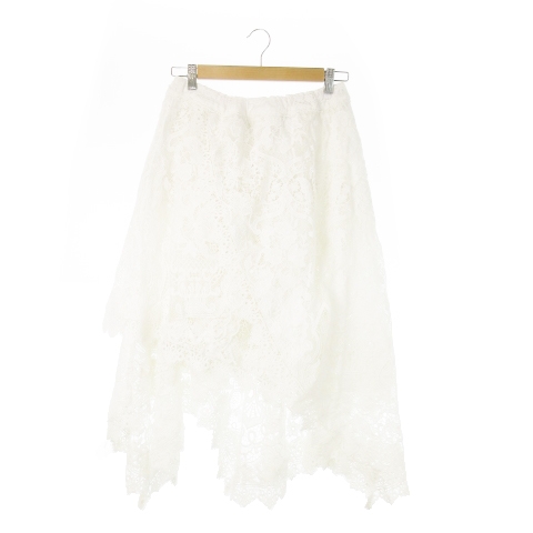 【中古】未使用品 コエル COEL 総レーススカート フレア ロング ヘムライン 厚手 ボリューム 38 M 白 ホワイト /AO2