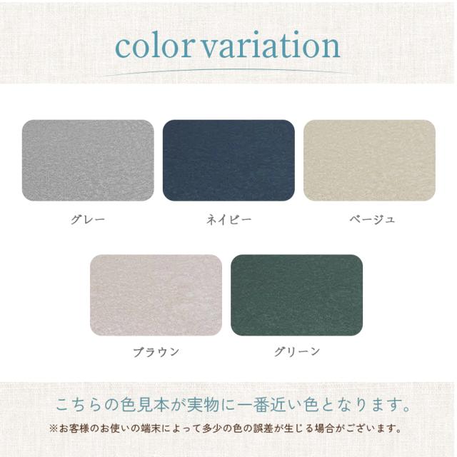 | 備考 | ●モニターの発色具合によって、色が実際のものと相違する場合がございます。 ●メーカーの生産ロットによって、カラー差異がございます。 ●匂いが気になる場合、風通しのよい所へ2,3日置いてからご使用ください。 ●乾燥させる場合は陰干しを行なってください。色の付いた水分を吸収した場合はシミとして残る場合があります。 |