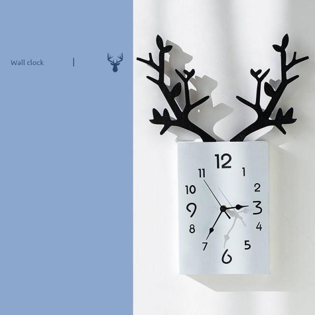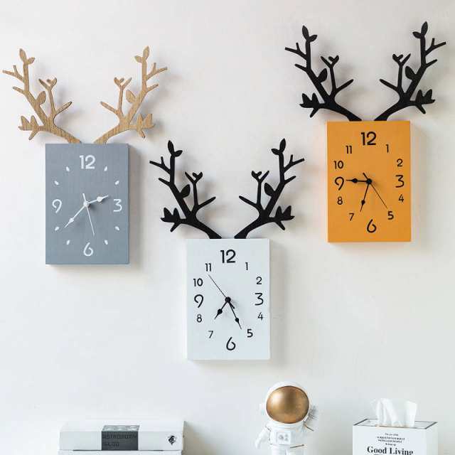 掛け時計 おしゃれ 壁掛け時計 モダン 時計 壁掛け ウォールクロック トナカイ 28*51cm 壁 壁時計 かっこいい おしゃれ時計 一人暮らし 女子 部屋 インテリア 北欧 雑貨 静音 立体 3D 凸凹