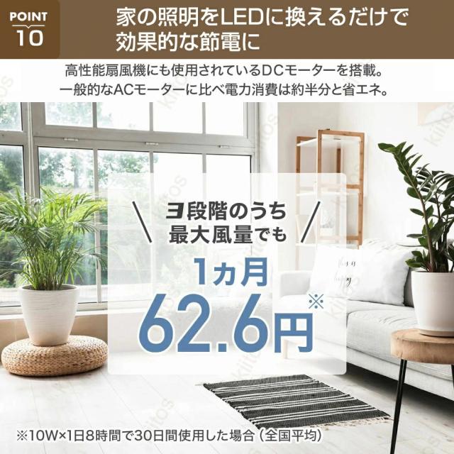 高品質なLEDチップを採用し、ライトが点灯しているとき、点滅せず均一な照明の効果を達成します。LEDチップだから長寿命、約40000時間!消費電力は白熱灯より約半分!お部屋全体を美しく照らす同時に、電気代も抑えられます!一度設定して、約10年交換不要。