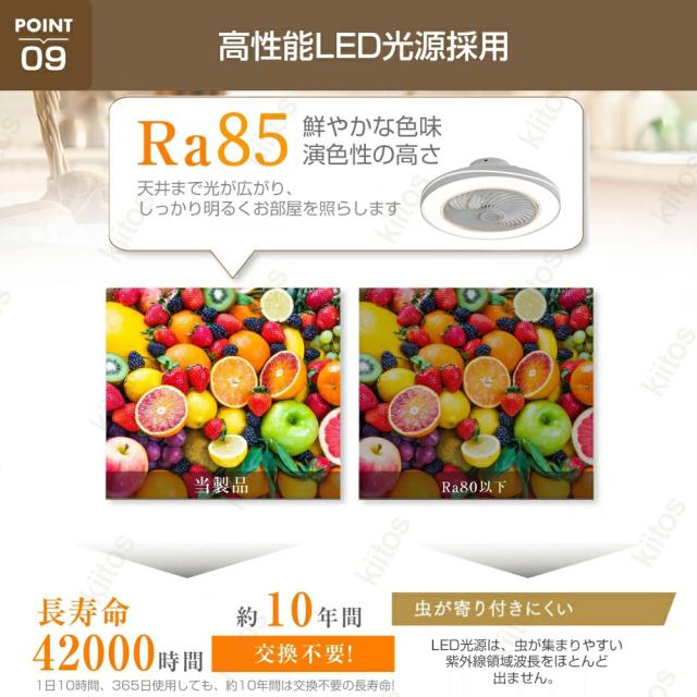 演色性が高いほどのシーリングライト、自然光に近いとされているので、文字がはっきりと見やすく、花の色や料理の色や人の肌色美しく自然に見えます。廊下、和室、寝室、洗面所、居間、書斎、トイレ、天井照明、キッチン照明が最適です。