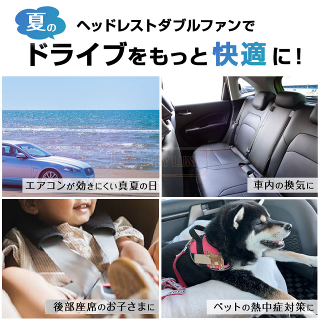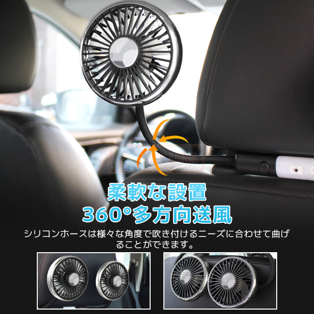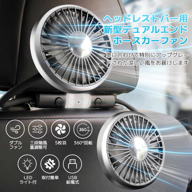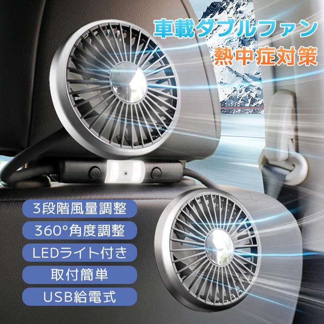最安挑戦 冬新作 送料無料 新作 2025新登場 車扇風機 ツインファン 車載 後部座席 ヘッドレスト ダブルファン 360°回転 USB給電式 サーキュレーター ツインファン 3段階風量調整 LEDライト 静音 熱中症対策 暑さ対策 循環換気