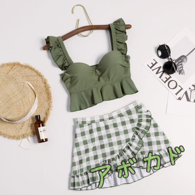 ビキニ 水着 レディース ハイウエスト 体型カバー水着 2点セット バックシャン バックフリル かわいい おしゃれ セパレート