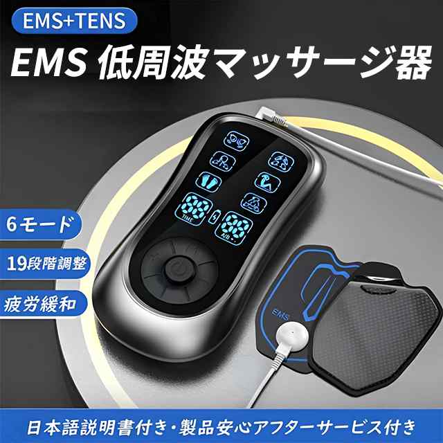 マッサージ器 低周波マッサージ器 ems パッド付き 充電式 6種類モード 19階段調整 疲労回復