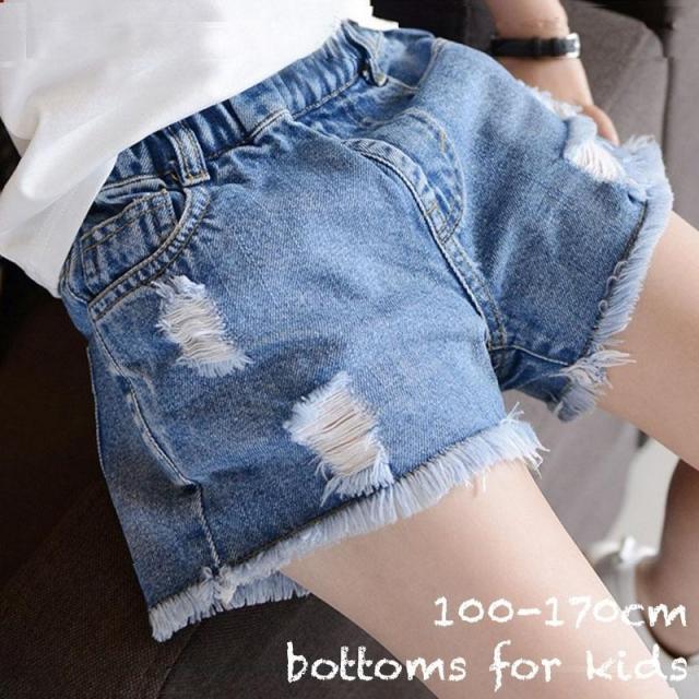 ショートパンツ デニム ダメージ 切りっぱなし キッズ ジュニア 女の子 ガールズ 子供 ボトムス デニムパンツ 短パン ウエストゴム カットオフ お
