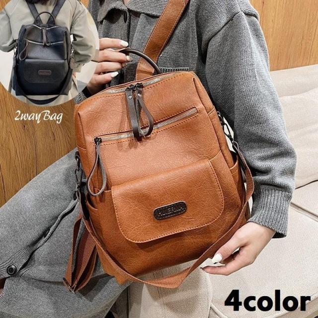 2wayバッグ リュックサック ショルダーバッグ デイパック レディース 女性 鞄 カバン 肩掛け 斜め掛け フェイクレザー ファスナー ポケット付き