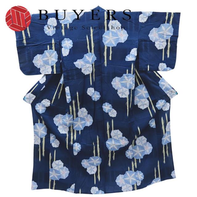 中古 浴衣 M 綿 ブルー系 マルチカラー アサガオ シンプル 大人可愛い 和装 呉服 和服 きもの レディース 女性