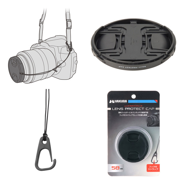 KALCP58 簡単に着脱できるフック付脱落防止ストラップが付属、レンズ交換が容易に可能!