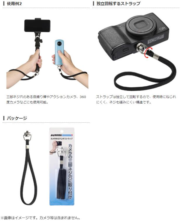 ■ストラップホールのないカメラや360度カメラなどに幅広く使えるハンドストラップ