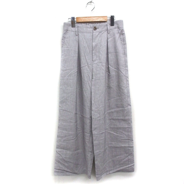 【中古】プラージュ Plage タック ワイドパンツ フルレングス 麻混 36 ライトグレー /FT22 レディース