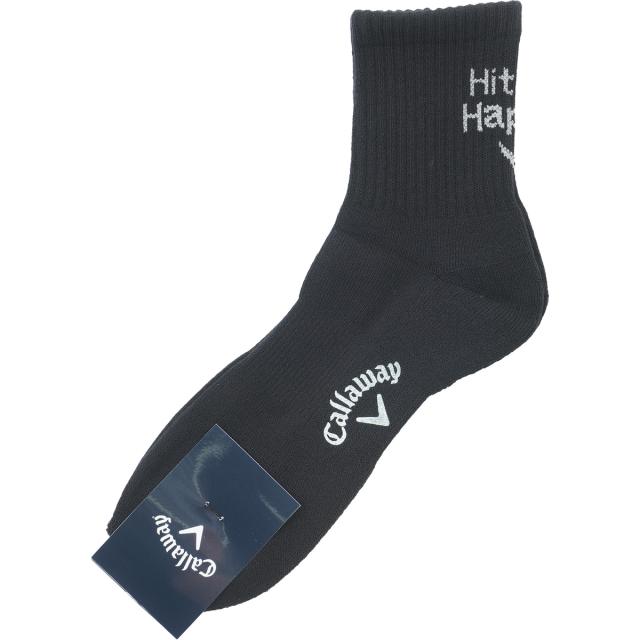 ファッションで人気のショートソックスです。後部には、創業者のキャロウェイ氏のメッセージ「Hit till Happy -成功するまで何度でもやる- 」がデザインされており、何度もチャレンジするゴルファーを勇気付けるデザインのソックスです。