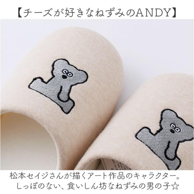 ねずみのANDY グッズ スリッパ 通販 ルームシューズ バブーシュ ルームスリッパ 室内履き バブーシュスリッパ ネズミのandy 室内 来客用 洗える 手洗い 滑り止め おしゃれ かわいい 松本セイジ 前詰まりスリッパ 生活雑貨 日用品雑貨