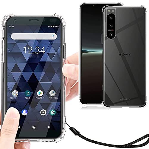 Xperia 5 IV ケース クリア 透明 カバー ストラップ付 xperia5マーク4ケース xperia5IV SOG09 SO-54C SOG09 ソフト バンパーケース 耐衝撃 クリアケース スマホケース ハンドストラップ バンパー ソフトケース