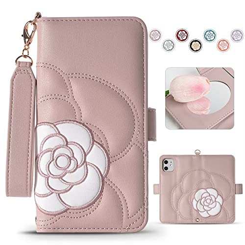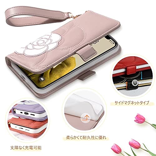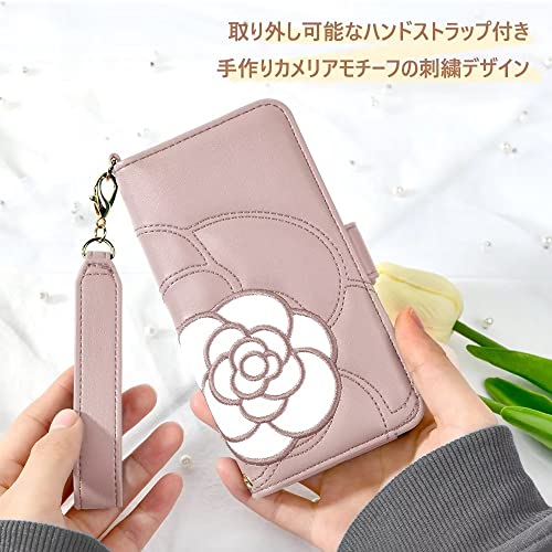 iPhone 11 ケース 手帳型 手帳 可愛い 財布型 アイフォン 11 手帳型 ケース 女性 シンプル お洒落 山茶の花 刺繍 カード収納 あいふぉん イレブン スマホケース ミラー付き 絶妙 ツバキ (椿) サザンカ 財布型 (ピンク)
