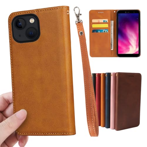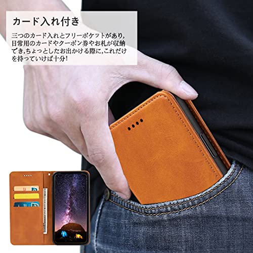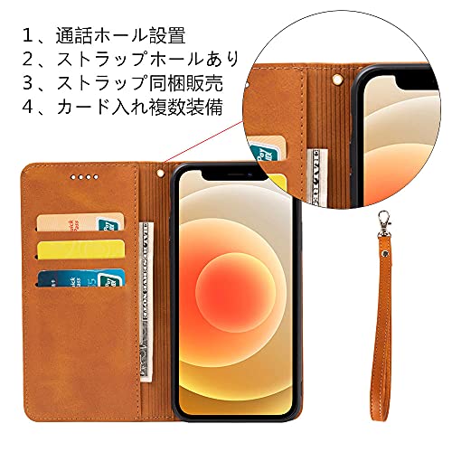 iPhone 13 ケース 手帳型 アイフォン 13 スマホケース 財布型 内蔵マグネット 弱磁 ストラップ カード収納 ストラップホール スタンド機能 耐衝撃 レトロ ライトブラウン