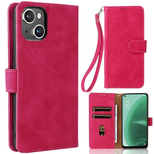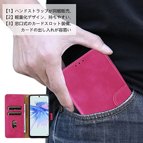 iPhone 15 ケース 手帳型 ストラップ付 アイフォン15 スマホケース スタンド ストラップ付き 窓口式 カード入れ マグネット 手帳ケース カードケース つや消し 落ち着いた色 ローズレッド