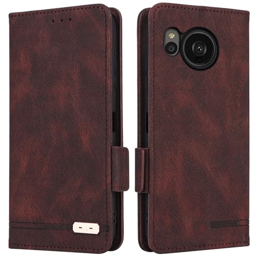 AQUOS sense8 ケース 手帳型 ストラップ付 SH-54D SHG11 SH-M26 スマホケース センス8 スタンド カバー カード カード入れ ストラップ カードケース スマホケース ストライプ マグネット ケース つや消し レトロ ダークブラウン
