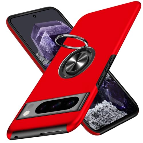 Google Pixel8 Pro ケース リング付き TPU 耐衝撃 スマホケース 車載ホルダー スタンド機能 軽量 薄型 グーグル ピクセル8プロ ケース カメラ保護 衝撃吸収 指紋防止 黄変防止 ストラップホール 一体型 手触り良い 保護カバー 赤