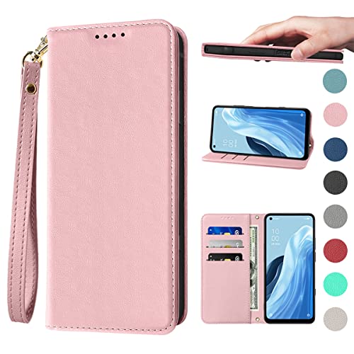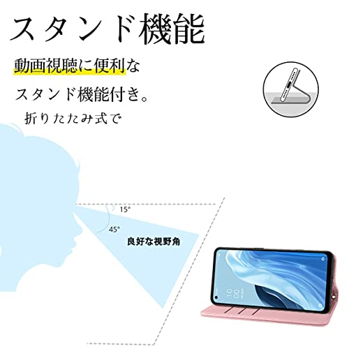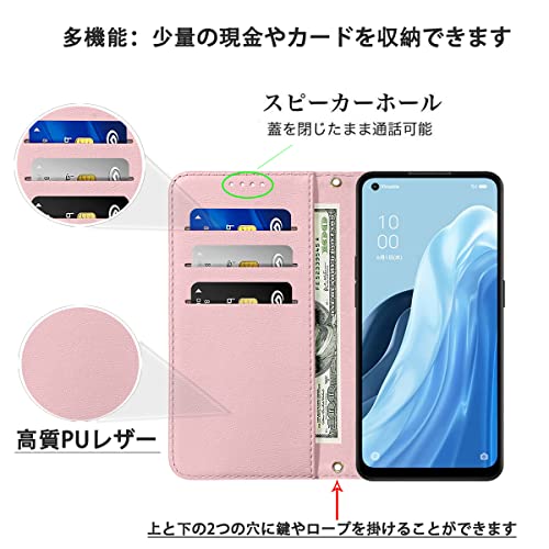 OPPO Reno7 A / Reno9 A ケース 手帳型 OPG04 ケース Reno7A Reno9A スマホケース A201OP CPH2353 耐衝撃 皮革 内蔵マグネット開閉式 ベルトなし スマホケース おしゃれ カードポケット スタンド ストラップ付 ピンク