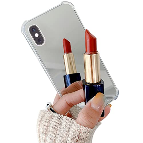 iPhone 10 / 10S ミラー ケース ストラップ iPhone X/XS 鏡 カバー iPhoneXS 鏡付き iPhoneXS カバー ミラー付き スマホケース iPhoneX iPhone10 ミラーケース ハード バンパーケース ストラップホール ハンドストラップ シルバー
