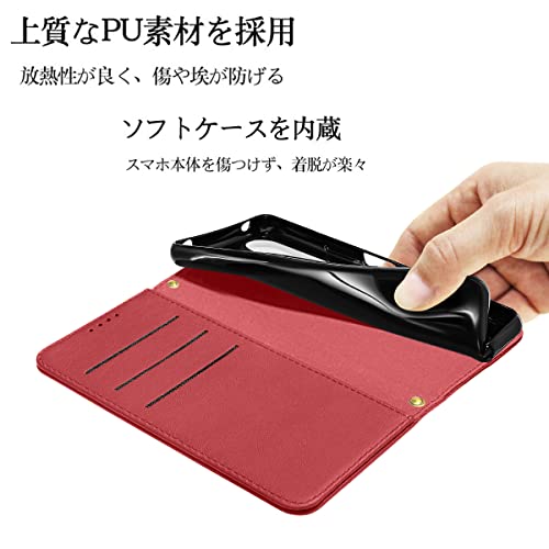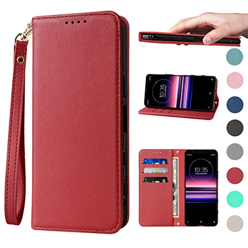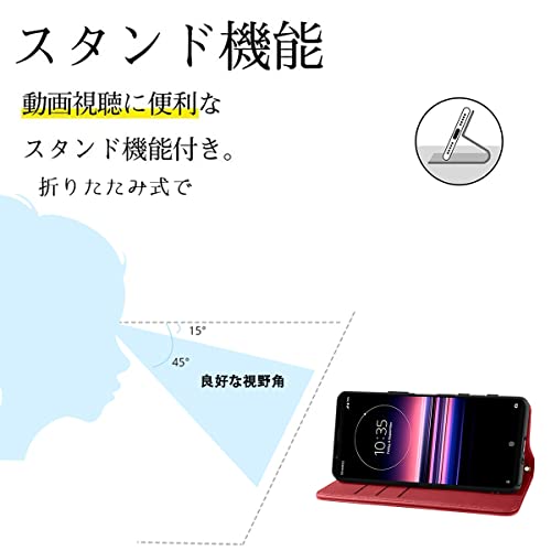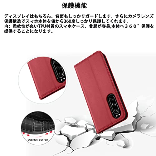 Xperia 5 ケース 手帳型 PUレザー Xperia 5 カバー Sony SOV41 ケース ソニー エクスペリア5 耐衝撃 SO-01M カバー Case 皮革 内蔵マグネット開閉式 ベルトなし スマホケース おしゃれ カードポケット スタンド ストラップ付 レッド