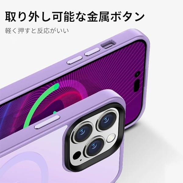 iPhone14ProMax ケース半透明 マグネット搭載 ワイヤレス充電 耐衝撃 耐久性 全面保護 黄ばみなし ストラップホール付き イフォン14 Pro Max カバー マグセーフ ライトパープル