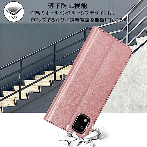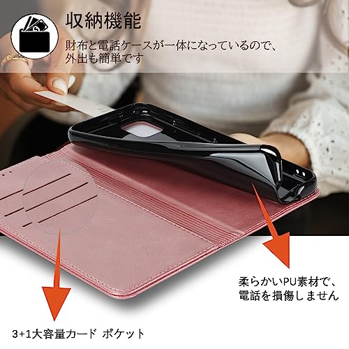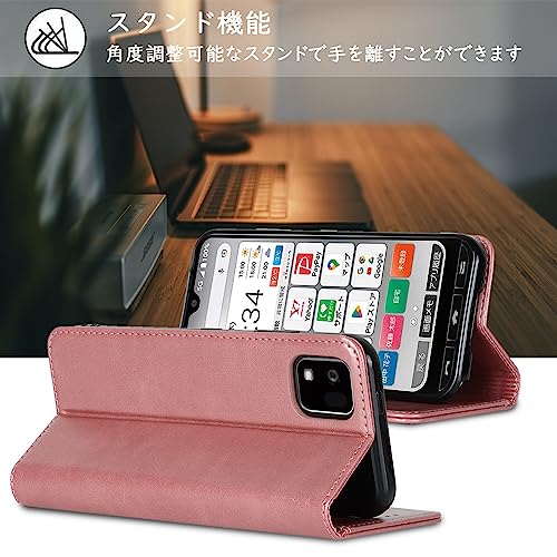 京セラ かんたんスマホ3 ケース 手帳型 a205kc ケース ワイモバイル 財布型 内蔵マグネット カード収納 ストラップホール スタンド機能 耐衝撃-ファッションローズゴールド