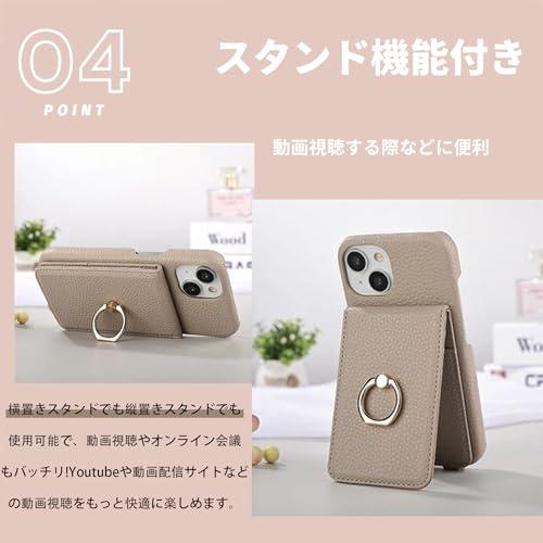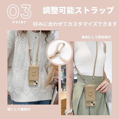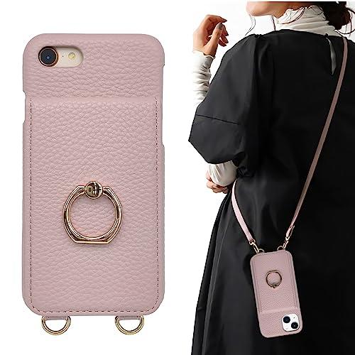 iPhone SE ケース ショルダー ストラップ付き スマホケース カード収納 背面手帳型 リング付 スマホケース 落下防止 肩掛け 斜め掛 首掛け 可愛 かわいい おしゃれ スタンド機能 iPhone8 7 se2 se3 第3世代 ケース ショルダー グレイッシュピンク