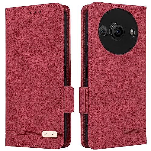 AQUOS R8 pro ケース 手帳型 ストラップ付 ライカ LEITZ PHONE 3 SH-51D ケース R8pro スマホケース R8プロ スタンド カバー カード カード入れ ストラップ カードケース スマホケース ストライプ マグネット ケース つや消し レトロ レッド