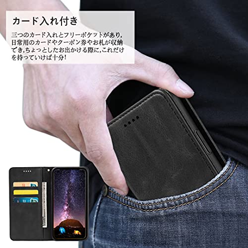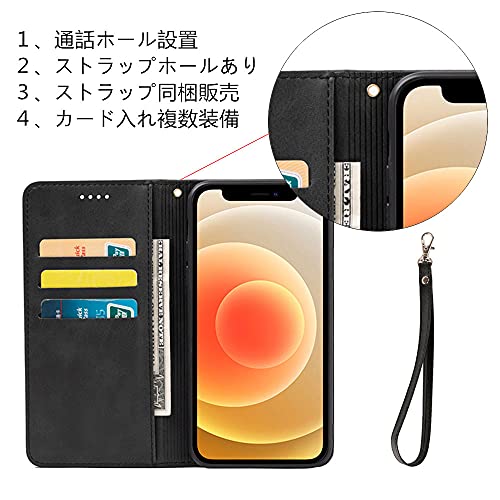 iPhone 11 ケース 手帳型 財布型 スマホケース 内蔵マグネット 弱磁 ストラップ カード収納 ストラップホール スタンド機能 耐衝撃 レトロ ブラック