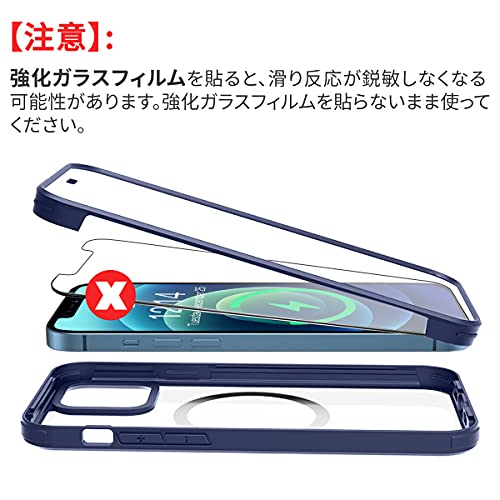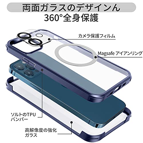 iPhone 12 ケース クリア 両面強化ガラス 360°全面保護 マグセーフ ワイヤレス充電 耐衝撃 アイフォン 12 透明 マグセーフ ケース スマホケース iPhone 12 人気 6.1インチ (ブルー)