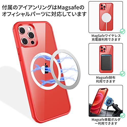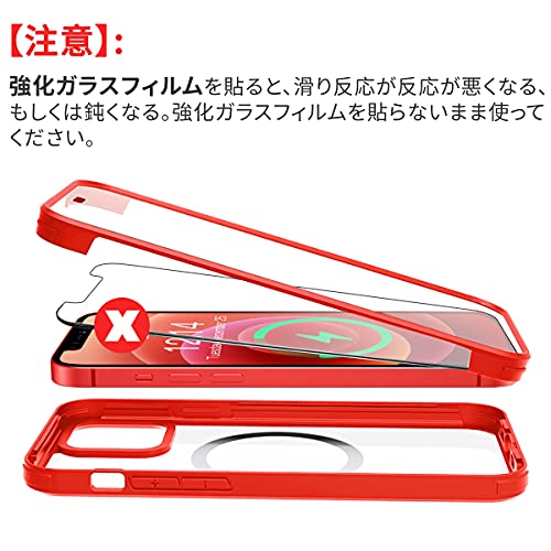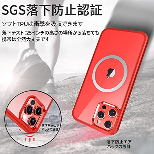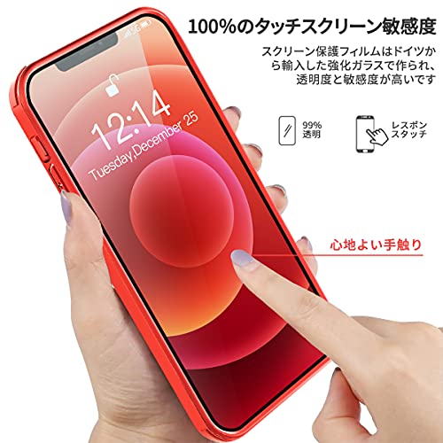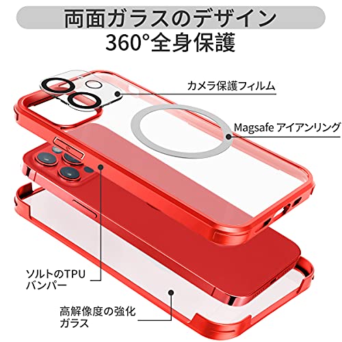 iPhone 12 Pro ケース クリア 両面強化ガラス 360°全面保護 MagSafe マグセーフ ワイヤレス充電 耐衝撃 アイフォン 12 Pro 透明 マグセーフ ケース・スマホケース iPhone 12 Pro 人気 6.1インチ (レッド)
