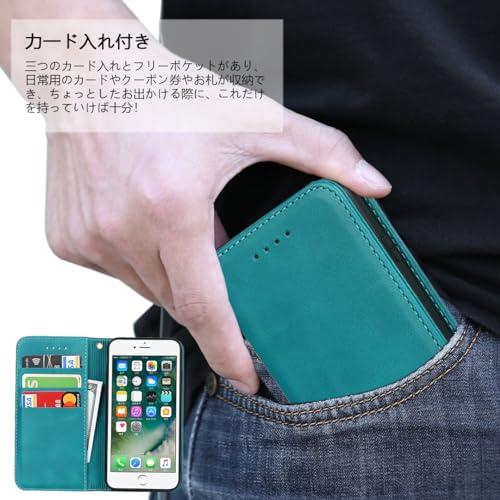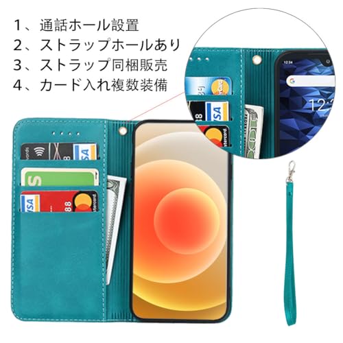Google Pixel 4a 5G ケース 手帳型 財布型 スマホケース 内蔵マグネット 弱磁 ストラップ カード収納 ストラップホール スタンド機能 耐衝撃 レトロ ターコイズ