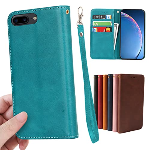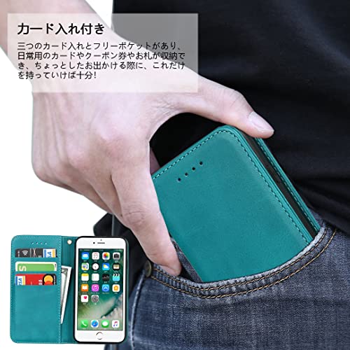 iPhone8plus / iPhone7plus ケース 手帳型 iPhone 7plus 8plus 手帳 iPhone8plusケース iPhone7plus iPhone8plus case iPhone8plus手帳型ケース iPhone7plusケース カバー アイフォン 8プラス 7プラス スマホケース 財布型 スマホケース 内蔵マグネット 弱磁 ストラップ カード収納 ストラップホール スタンド機能 耐衝撃 レトロ ターコイズ