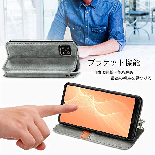 AQUOS sense5G sense4 sense4 lite sense4 basic AQUOS sense4 SH-53A SHG03 SH-41A A003SH ケース 手帳型 ビジネス スマホ 保護カバー 強力 ホールド 多機能 スマホホルスター (グレー)