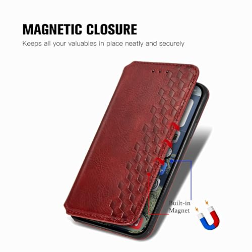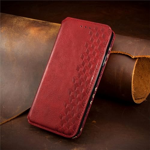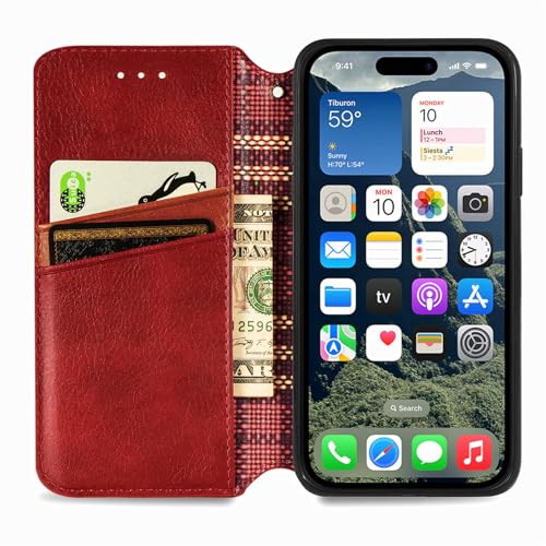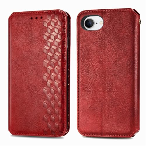 iPhone 16E ケース 手帳型 ビジネス スマホ 保護カバー 強力 ホールド 多機能 ホルスター 財布 ホルダー バンブーパターン 耐久性摩擦耐性 (赤)