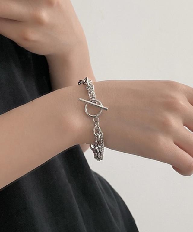 | 商品説明 | ・無骨な太めチェーンと細身チェーンが存在感のあるシルバーブレスレット。 ・シンプルなデザインなのでどんなコーディネートにも合わせやすいアイテム。 ・ユニセックスで使用可能。 |