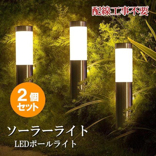 LEDソーラーライト 2個セット ポールライト 大容量 暗くなると自動点灯 埋め込み式 庭園灯 ガーデンライト ガイドライト 防水 防犯