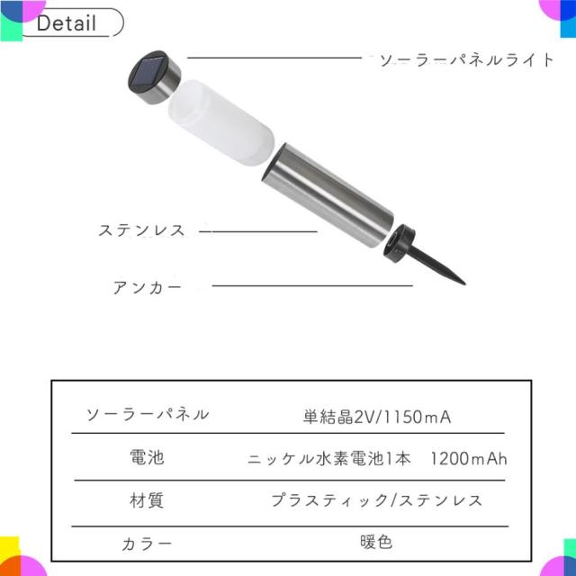 LEDソーラーライト 2個セット ポールライト 大容量 暗くなると自動点灯 埋め込み式 庭園灯 ガーデンライト ガイドライト 防水 防犯
